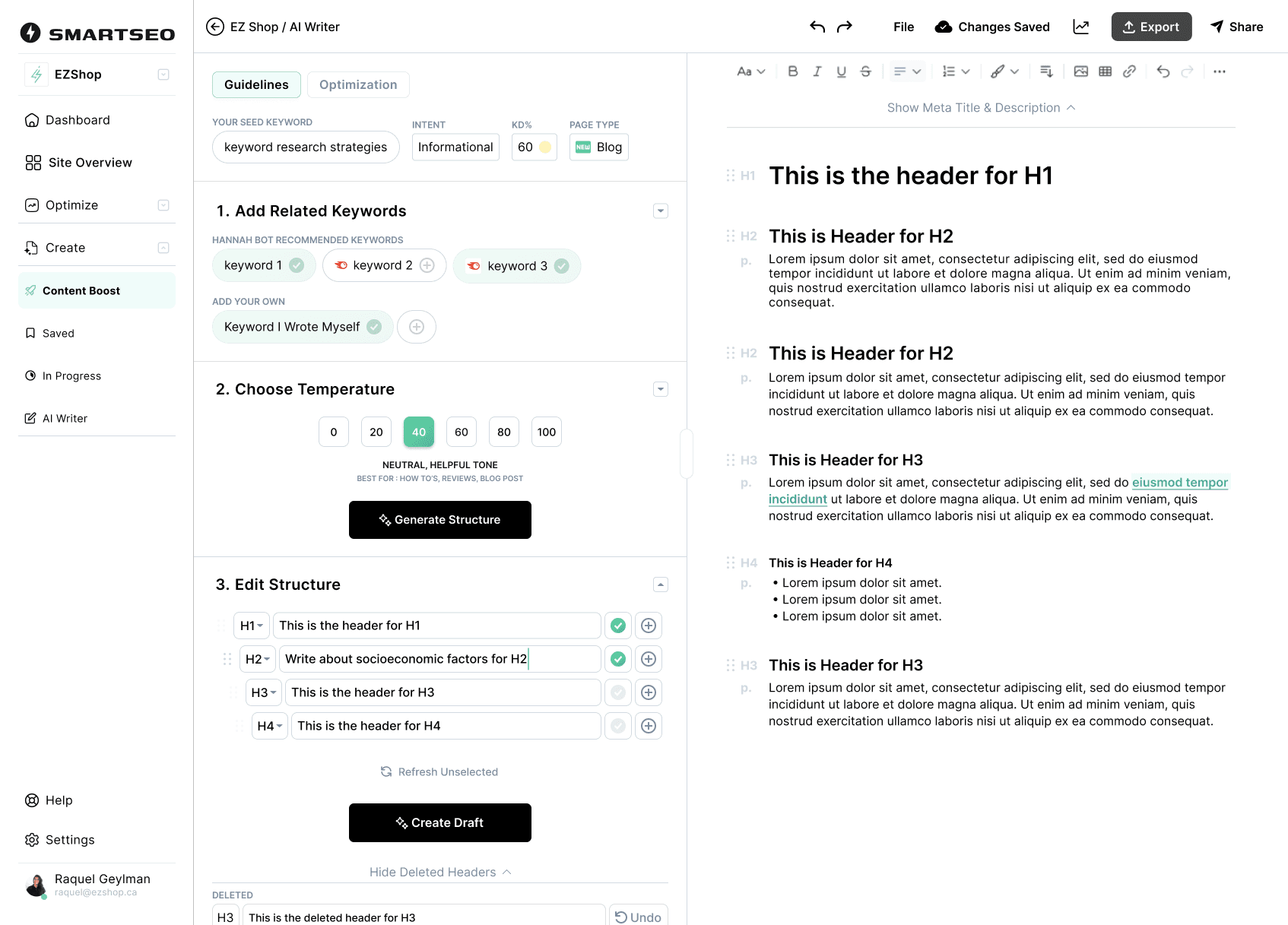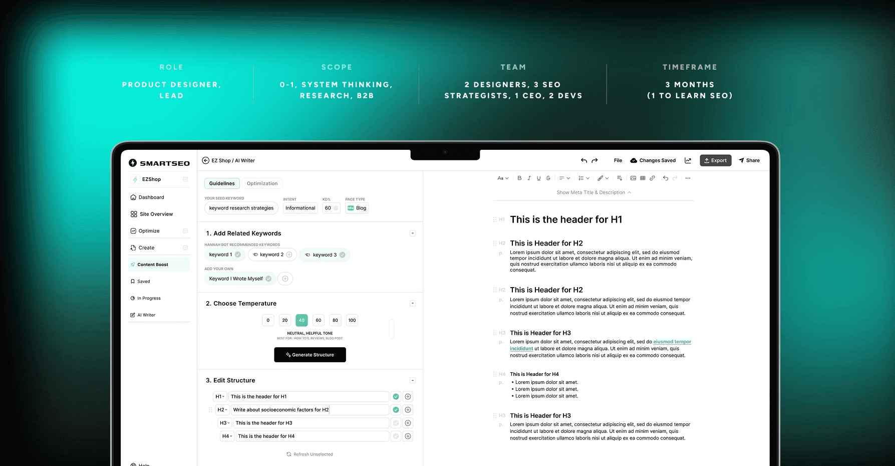 Writing content in volume is error-prone and time-consuming, capping output and SEO performance. I iterated until writers had just enough context to move faster and be able to reverse early-decisions mid-writing.